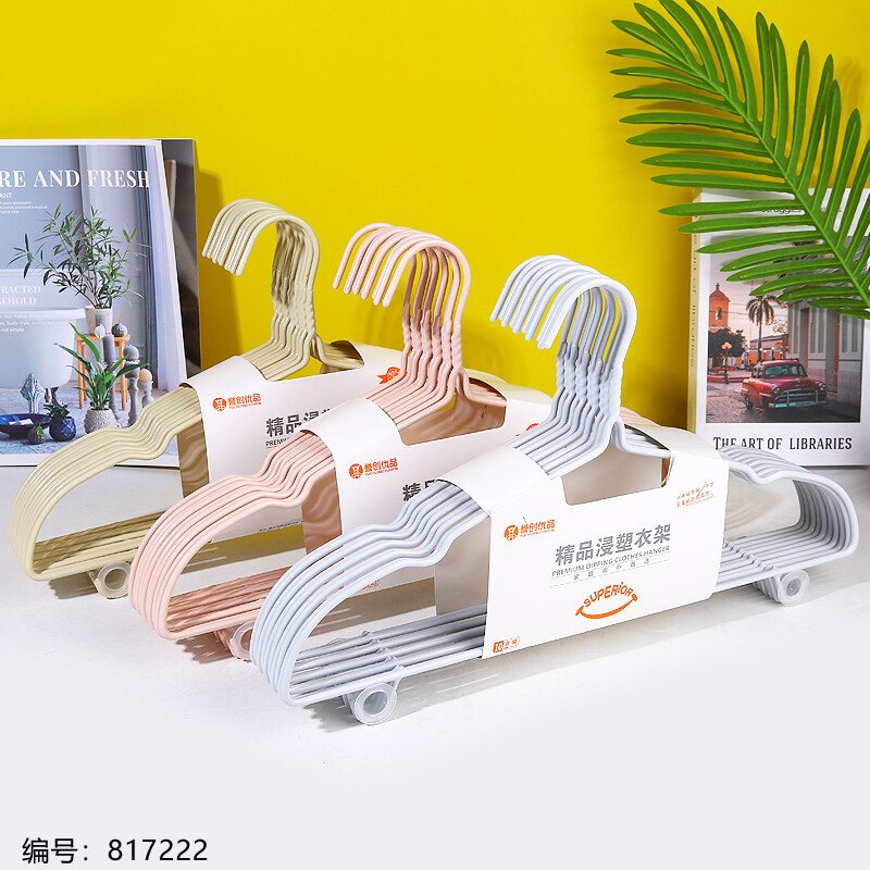 6728精品浸塑加粗衣架10支/把 混色 衣架系列-日用百货
