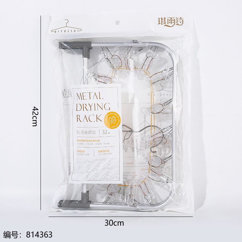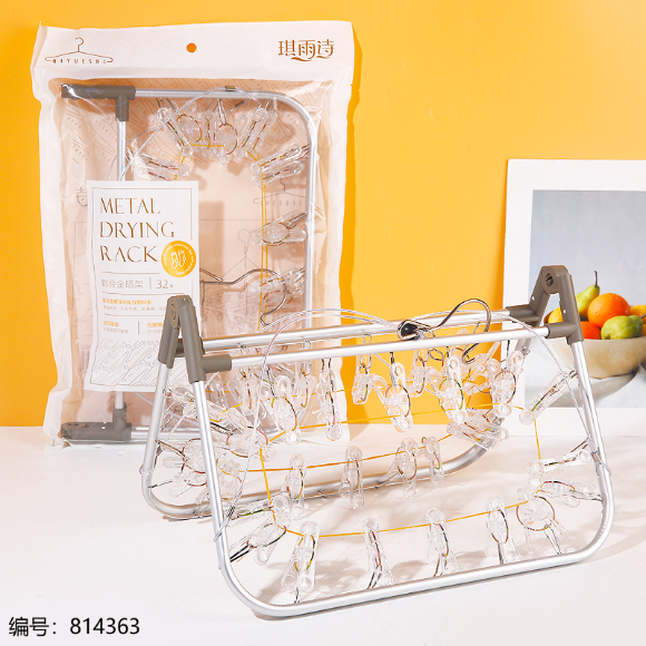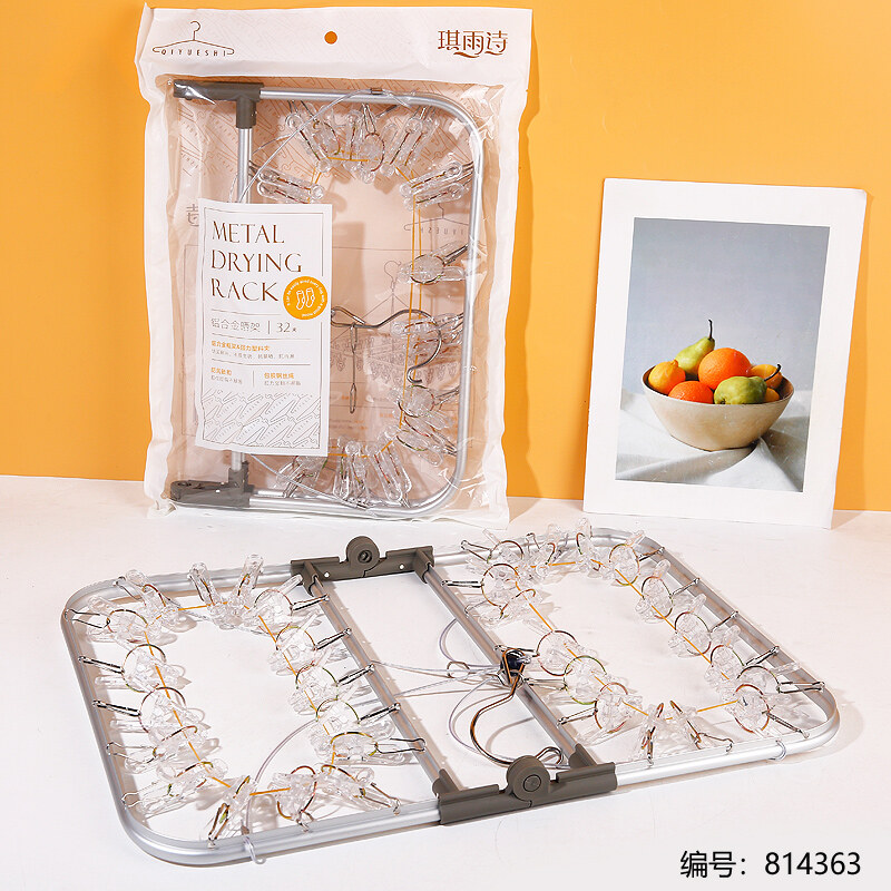 ZS-8856铝合金水晶方形折叠晒架32夹 不锈钢袜架被夹-日用百货