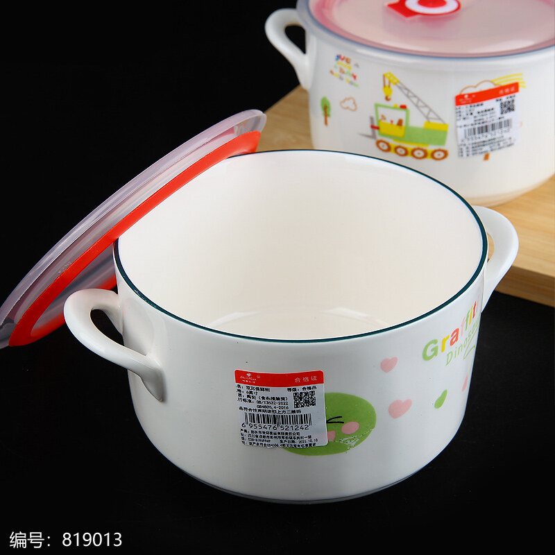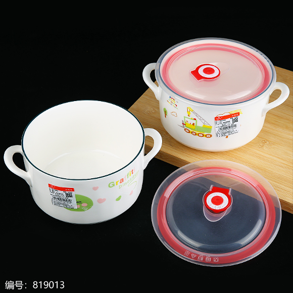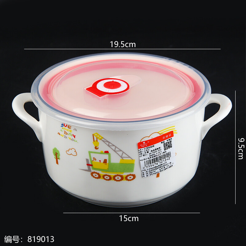 6双耳菱格保鲜碗 F295 瓷器制品-日用百货