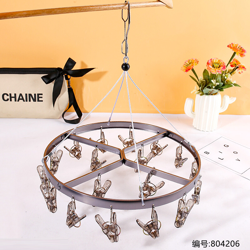 ZS-8855铝合金水晶小圆袜架18夹 不锈钢袜架被夹-日用百货