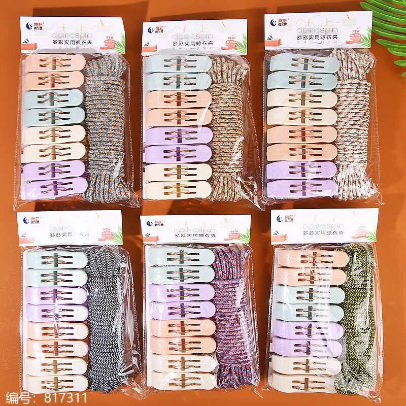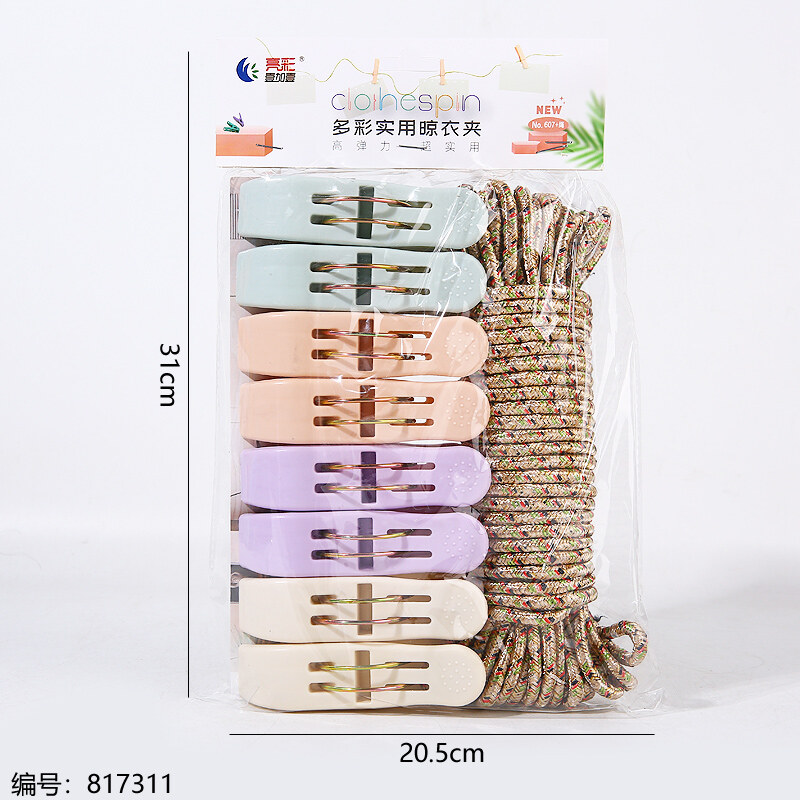 607+绳强力衣夹 混色 塑料衣夹-日用百货
