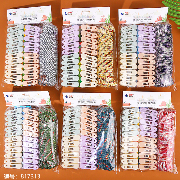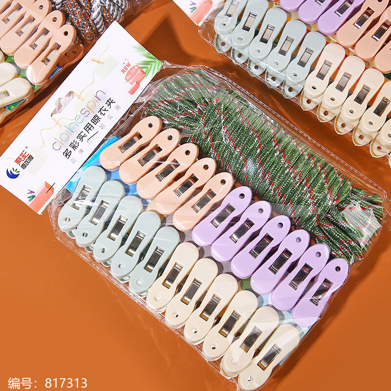 702+绳强力衣夹 混色 塑料衣夹-日用百货
