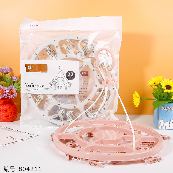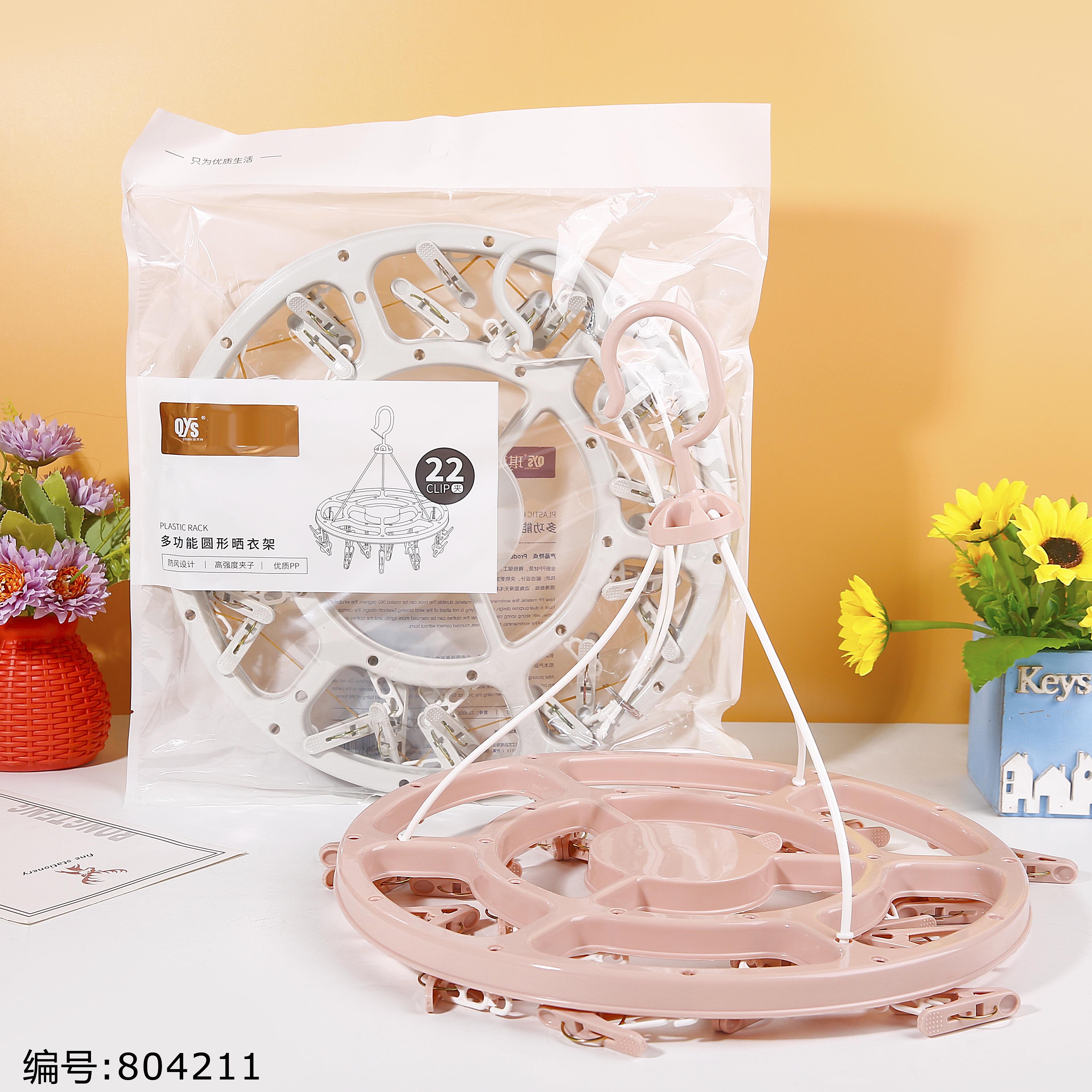 ZS-8205圆形袜架22夹 塑料袜夹晒衣架-日用百货