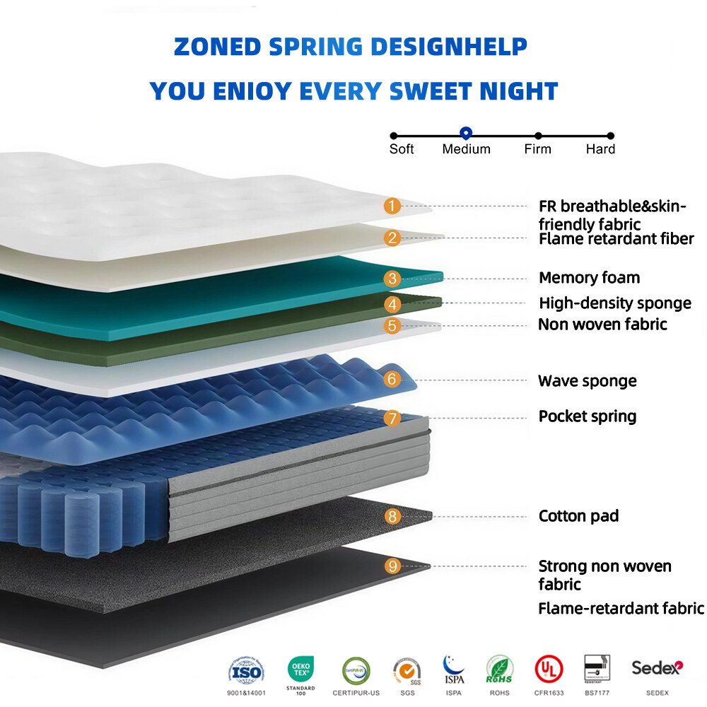 精钢独立弹簧,凝胶记忆棉,环保高回弹棉