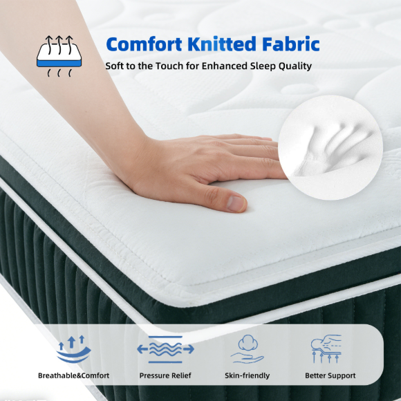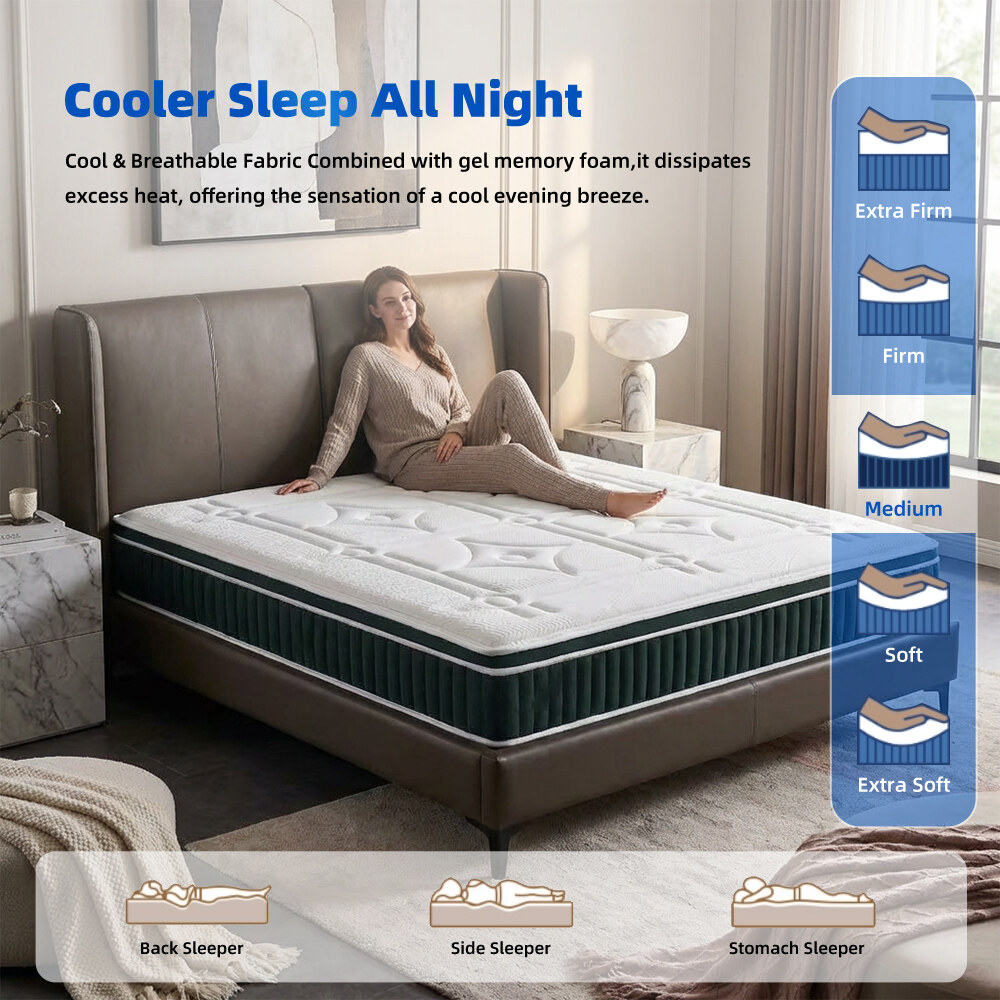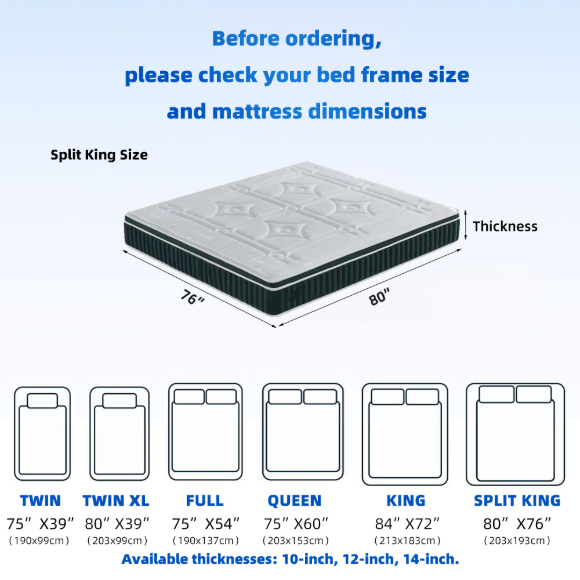 北美市场豪华加大号双人记忆棉酒店床垫|独立盒子装海棉卧室床垫|