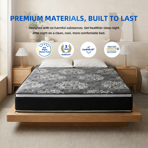 北美市场高端豪华盒装床垫|卧室独立弹簧特大号女王床垫|