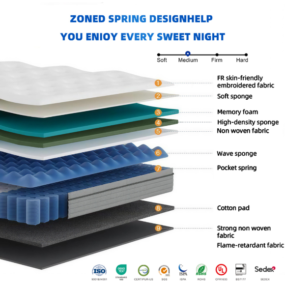 精钢独立弹簧,凝胶记忆棉,环保高回弹棉