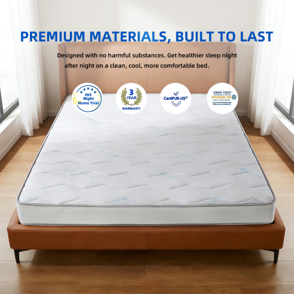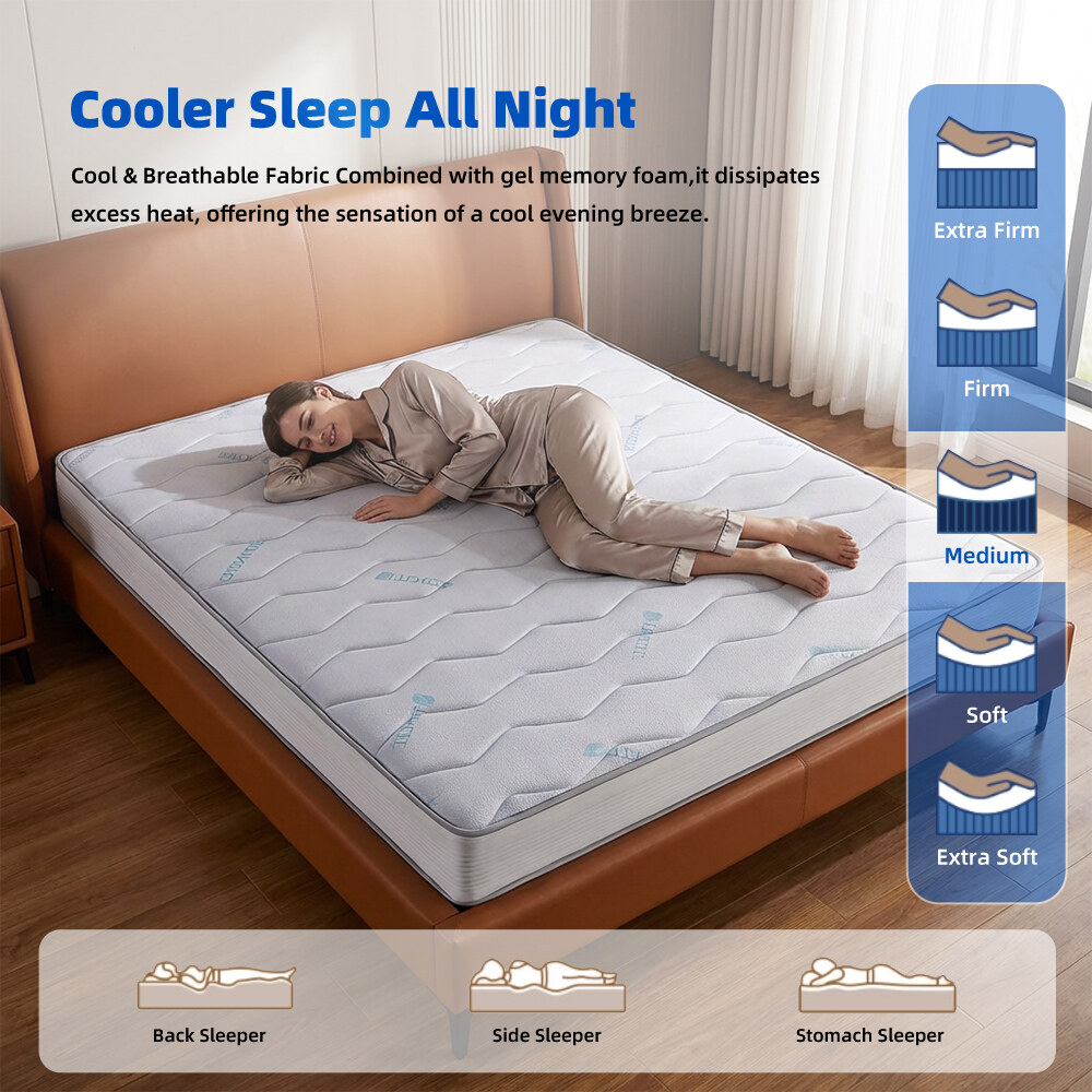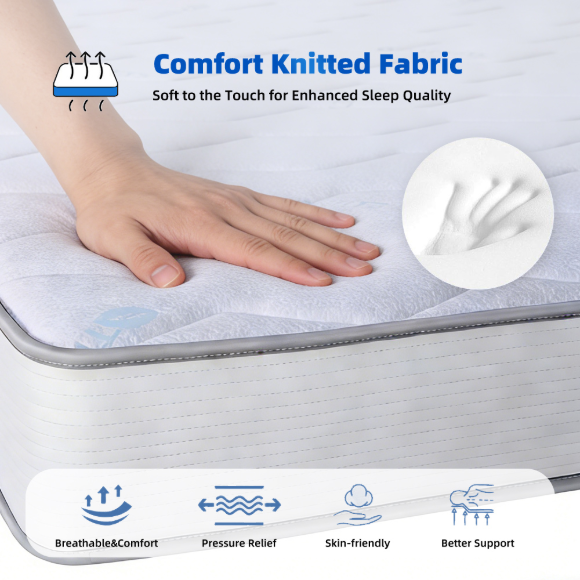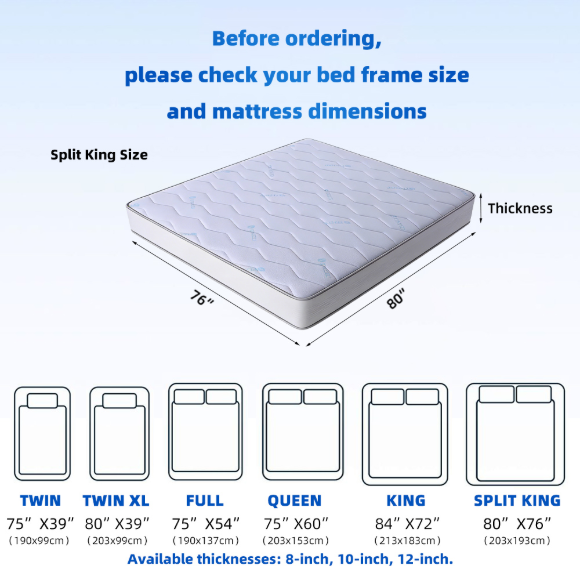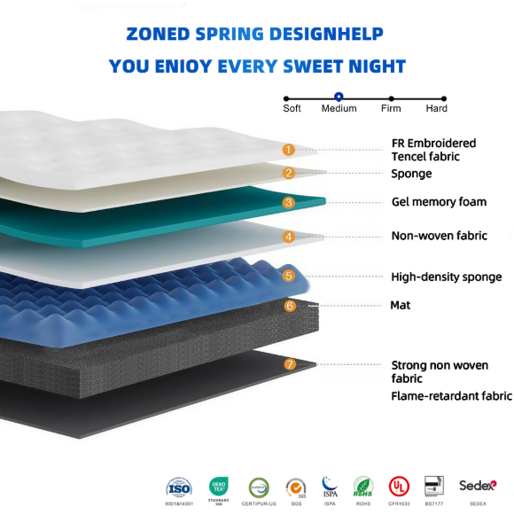 北美市场混合型独立袋装弹簧床垫|卧室特大号双人床垫|