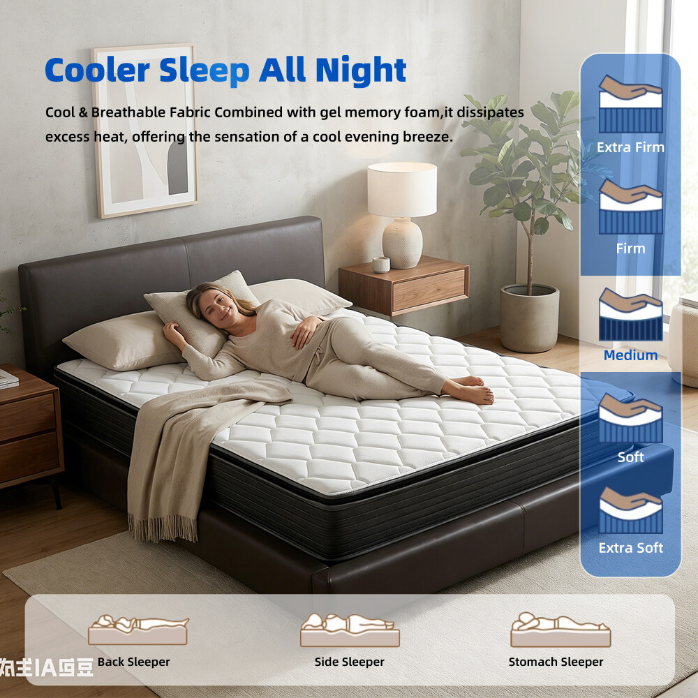 精钢独立弹簧,凝胶记忆棉,环保高回弹棉