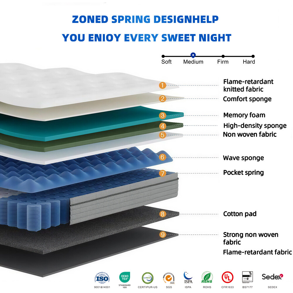 精钢独立弹簧,凝胶记忆棉,环保高回弹棉