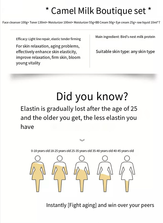 佩兰诗骆驼奶补水保湿100g+130ml+100ml+55g+50g+25g+10ml*7面部护理护肤套盒