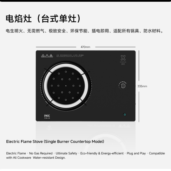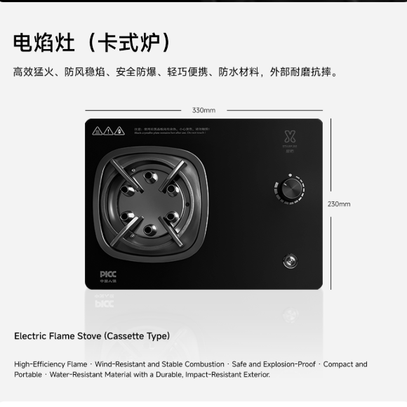 电火灶台式单灶:65m³/柜;电火灶卡式炉:66m³/柜;