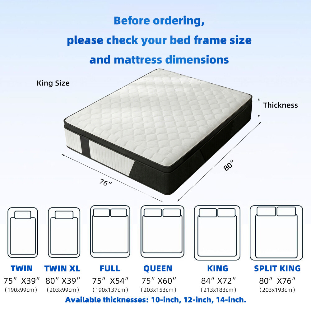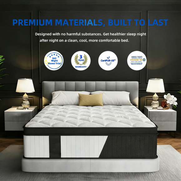 北美市场混合型独立弹簧静音床垫|记忆棉多层海棉高回弹公寓床垫|