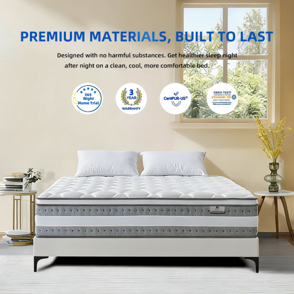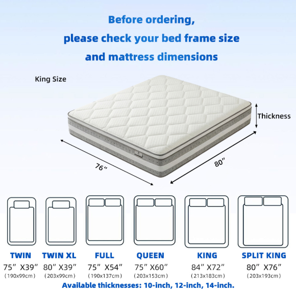 北美市场独立弹簧静音海棉家用床垫|女王尺寸公寓床垫|记忆棉床垫