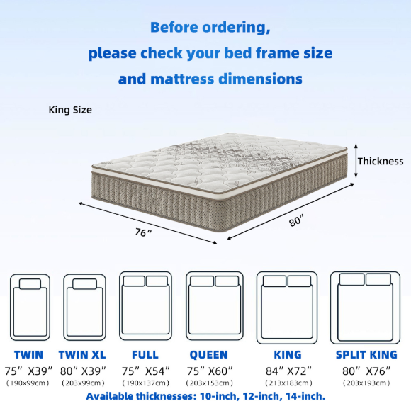 北美市场混合型精钢静音独立弹簧酒店床垫|多规格海棉公寓床垫|