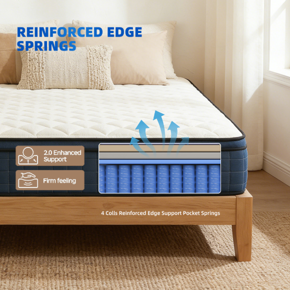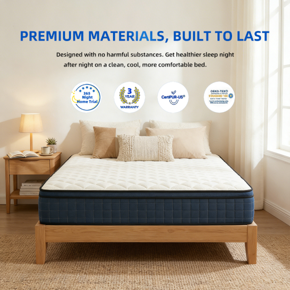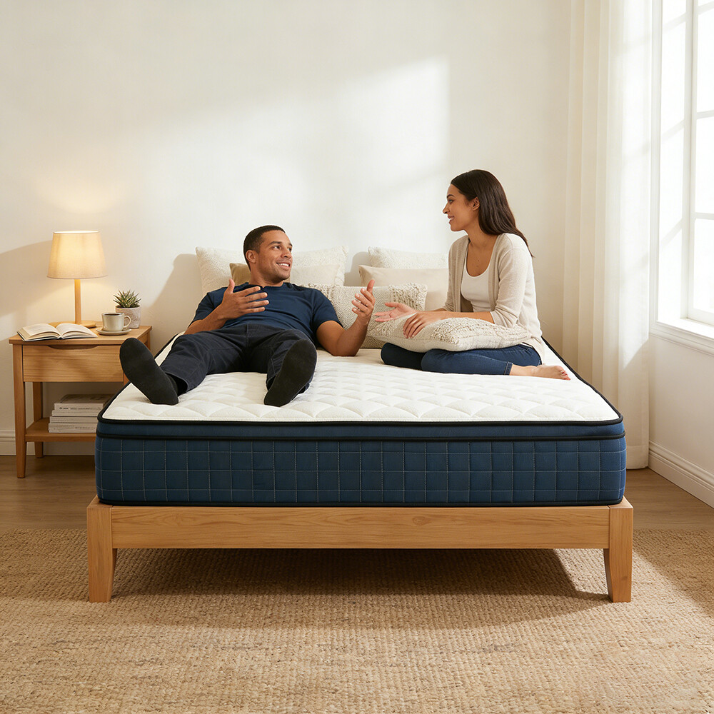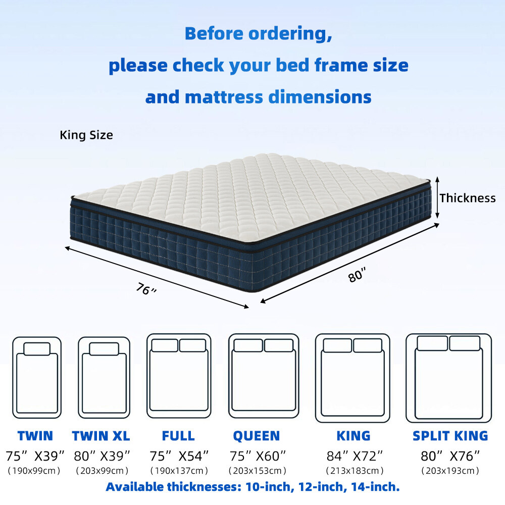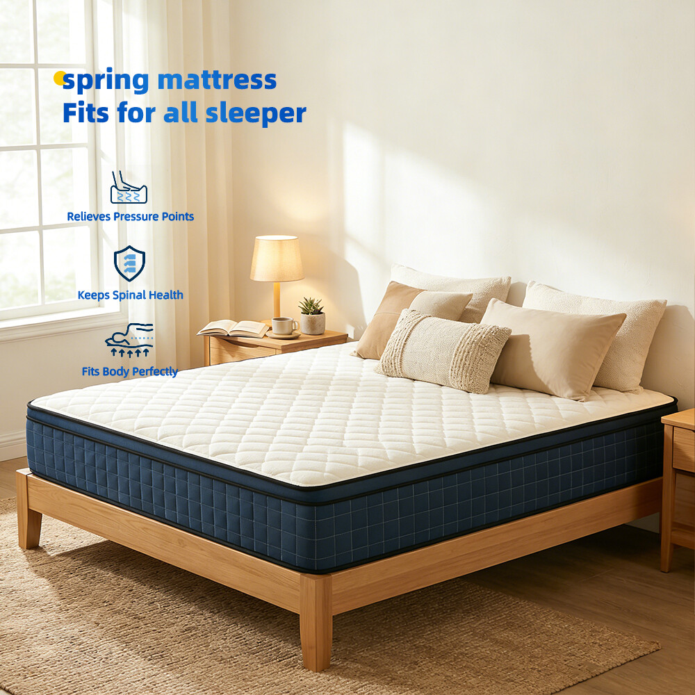 北美市场混合型海棉公寓床垫|特大号双人记忆棉床垫|独立弹簧经济型床垫