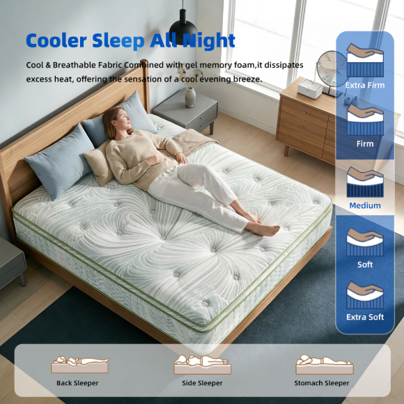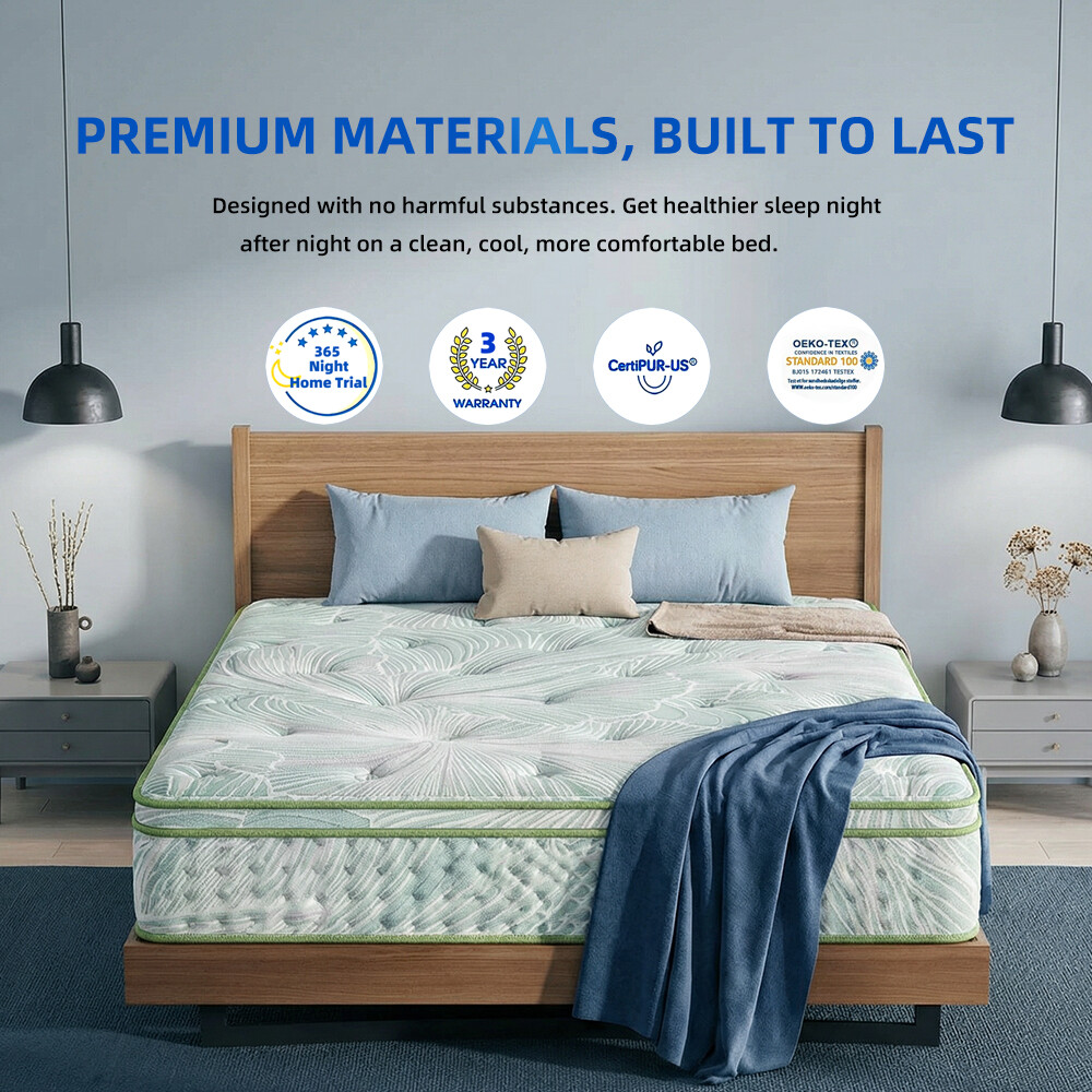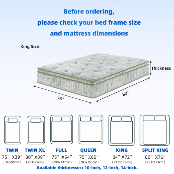 北美市场多规格独立弹簧不干扰酒店床垫|凝胶记忆棉公寓床垫|环保材质学校床垫