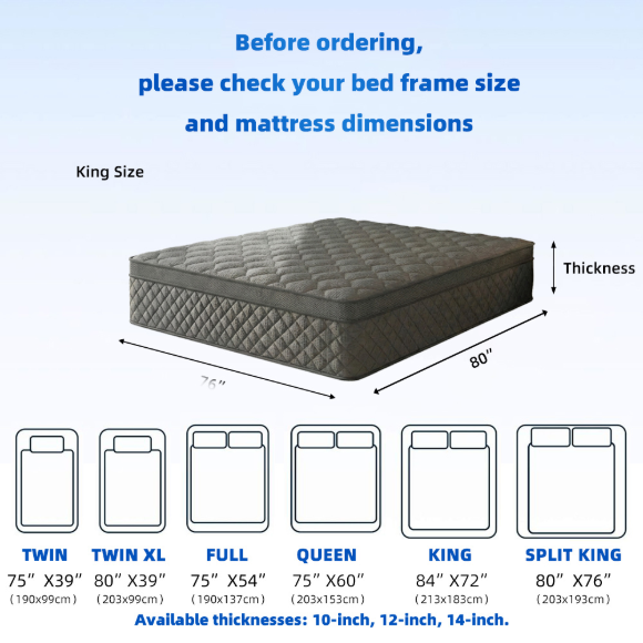 北美市场混合型独立弹簧静音酒店床垫|清爽睡眠记忆棉多层海棉公寓床垫|多规格环保材质学校床垫