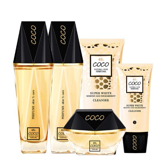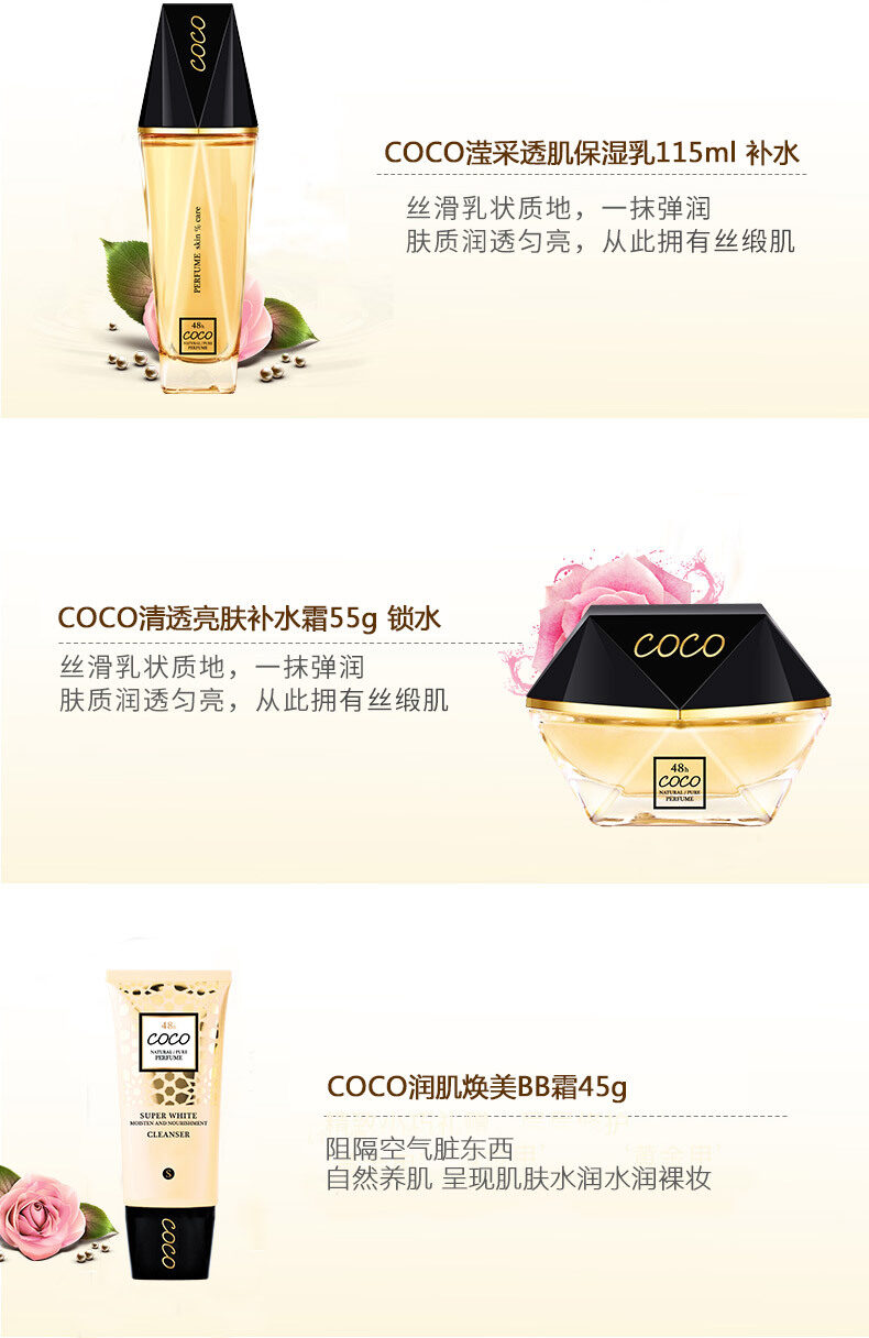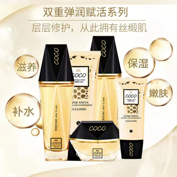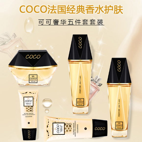 佩兰诗可可香氛奢华保湿补水美白100g+125ml+115ml+55g+45ml护肤套盒