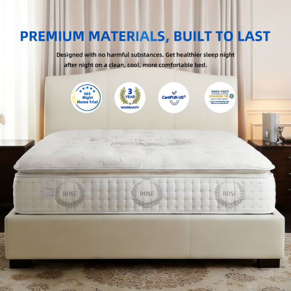 北美市场高品质独立弹簧不干扰静音商用床垫|透气干爽高端面料酒店床垫|多规格环保材质公寓床垫|
