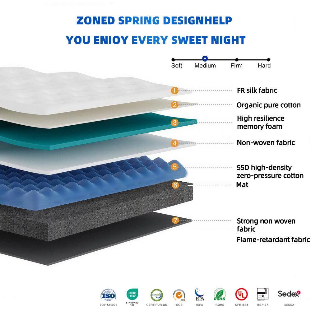 北美市场高档多层海棉柔软酒店床垫|高品质蚕丝面料亲肤学校床垫|多规格环保材质商用床垫|