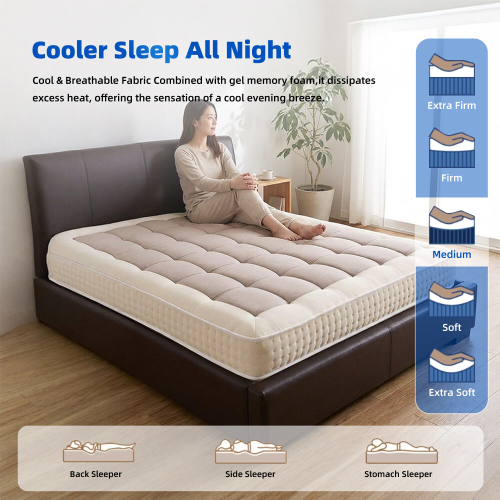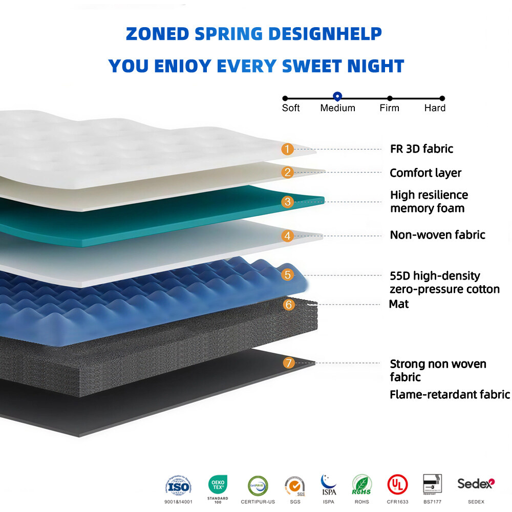 北美市场高端面料独立弹簧酒店床垫|透气干爽面料女王卧室床垫|高品质环保材质公寓床垫|