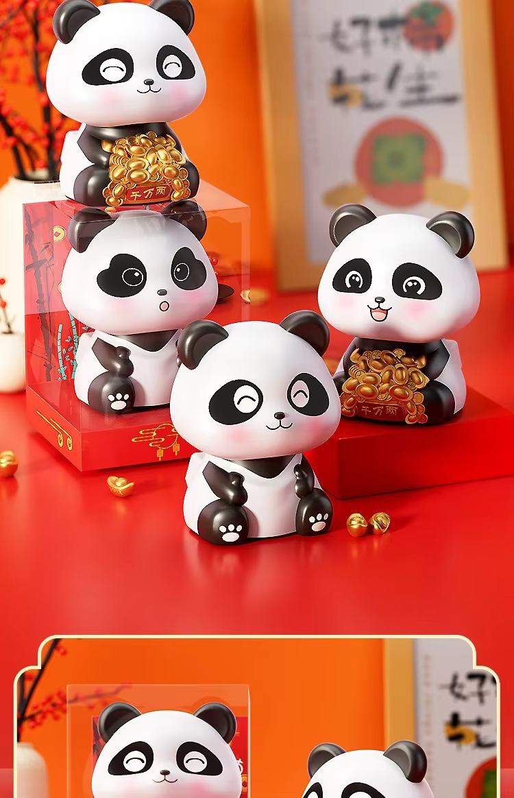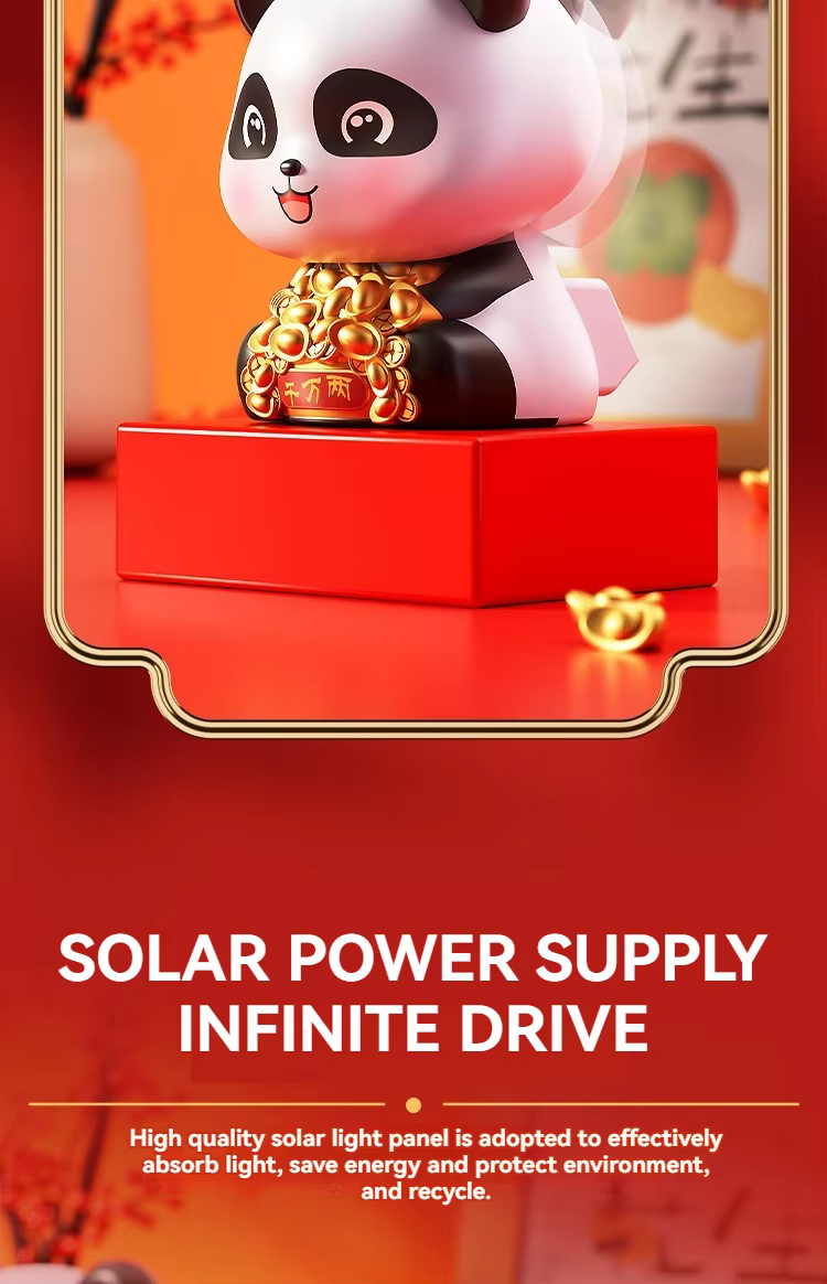 太阳能熊猫摆件 熊猫饰品自动摇头汽车办公室家居开业乔迁礼品装饰