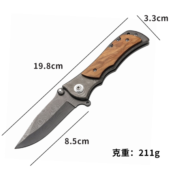 3CR13不锈钢刀刃+橄榄木手柄,户外折叠刀