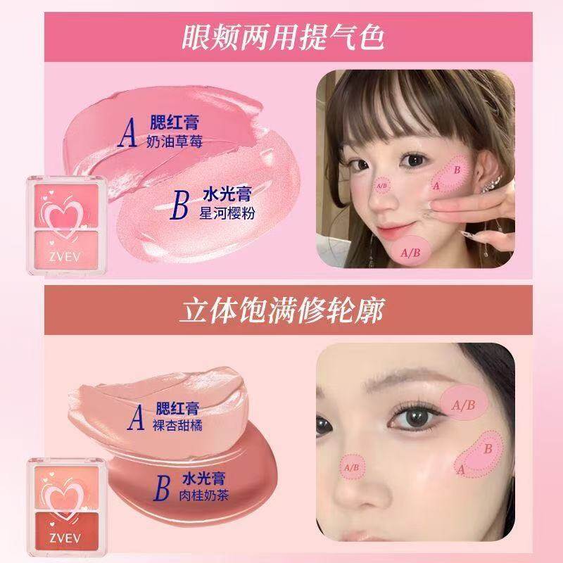 化妆品 少女心腮红合集 渐变双头三色水光雾感腮红盘 美妆系列