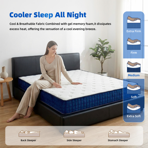北美市睡感偏软公寓床垫|透气清爽面料卧室床垫|多规格弹簧学校床垫|