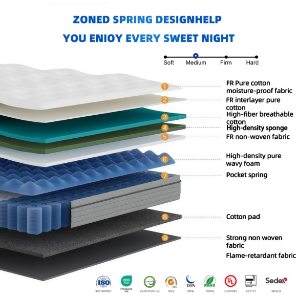 精钢独立弹簧,凝胶记忆棉,环保高回弹棉