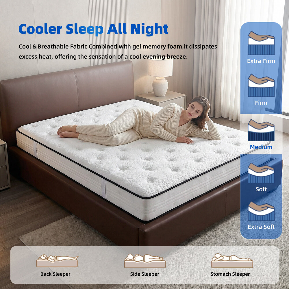 北美市睡感偏硬公寓床垫|亲肤透气吸汗面料家用床垫|多规格弹簧记忆棉学校床垫|