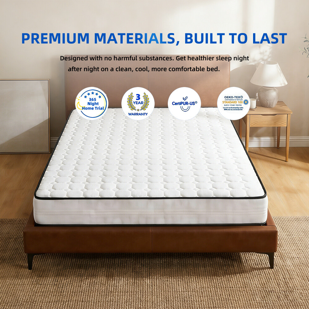 北美市盒装床垫|高回弹海棉full卧室床垫|多规格弹簧公寓床垫|