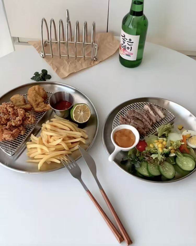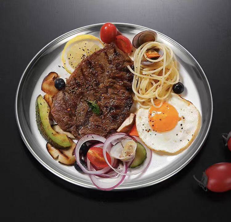 不锈钢食物盘,坚固耐用,耐腐蚀易清洗。
