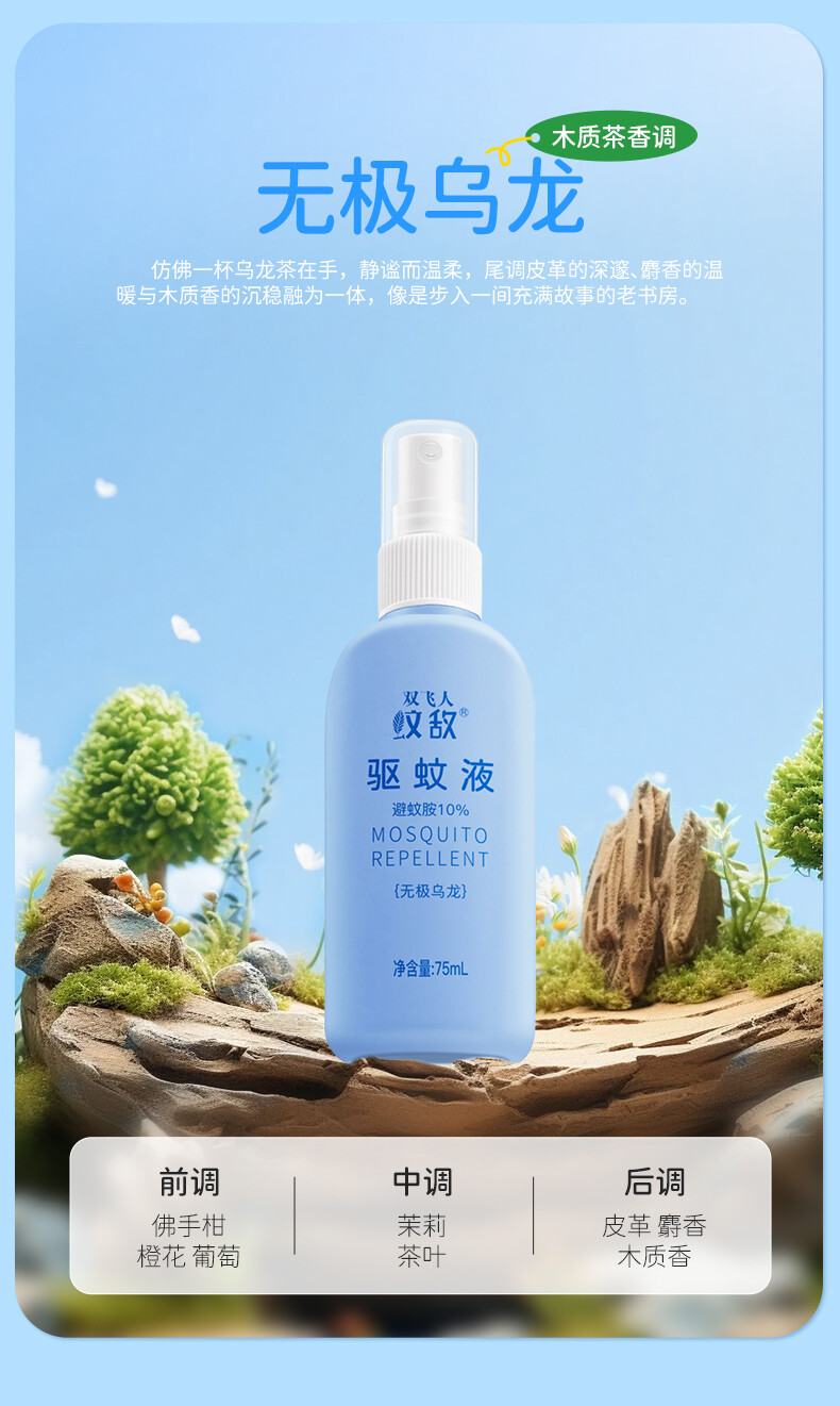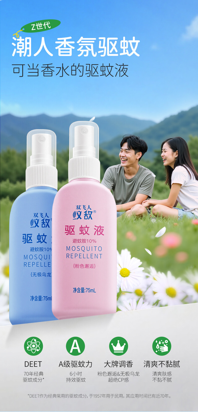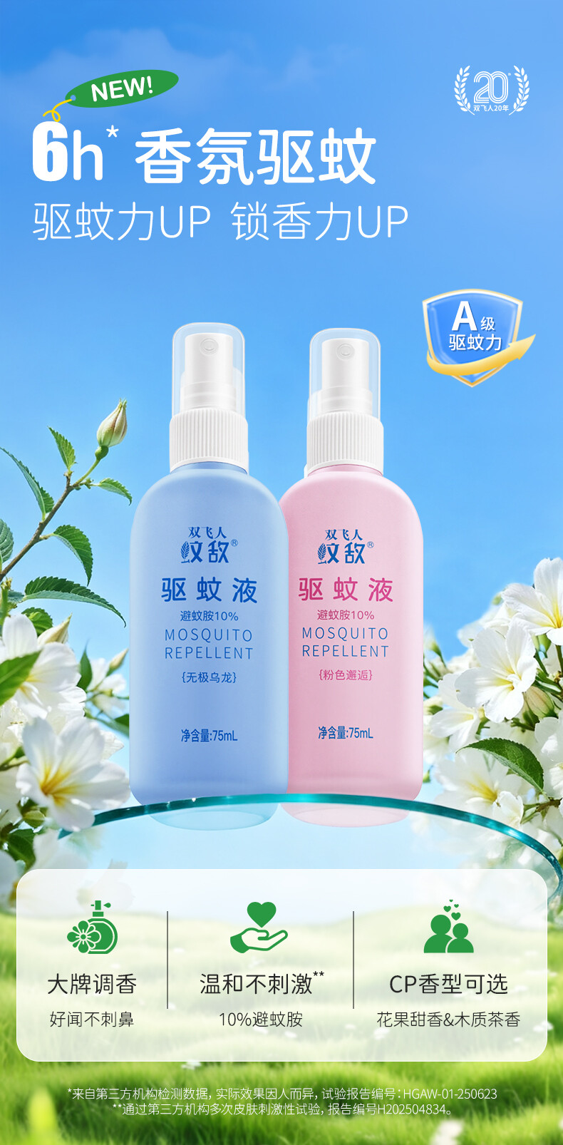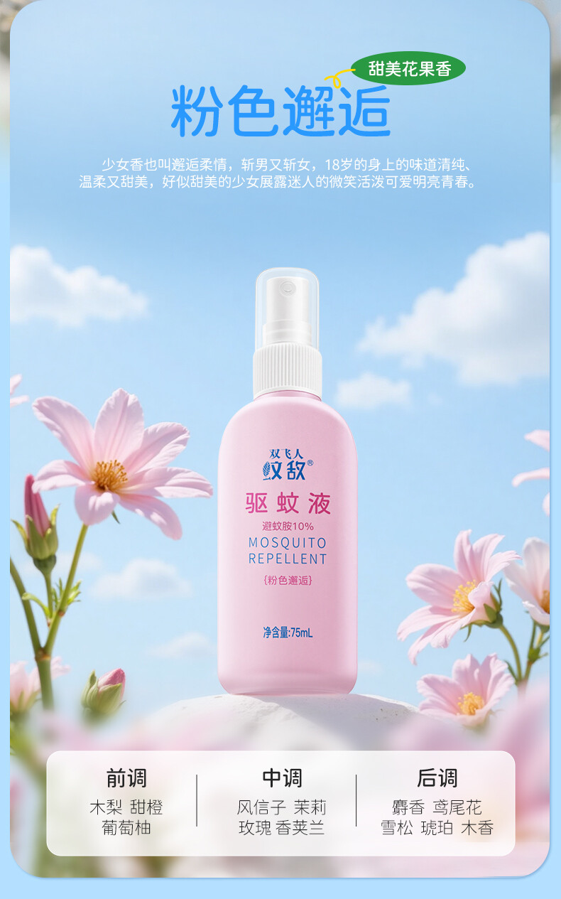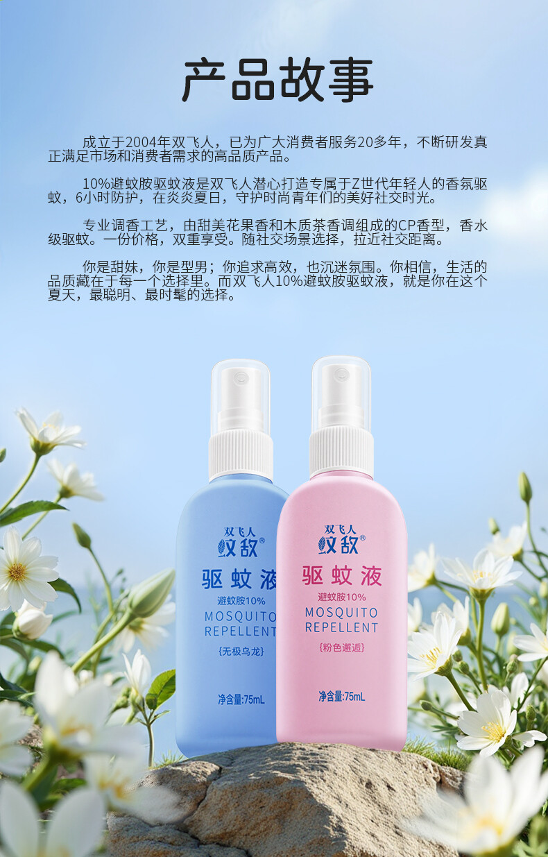 双飞人10%避蚊胺香氛驱蚊液驱蚊喷雾成人户外防蚊驱蚊液神器蚊怕水