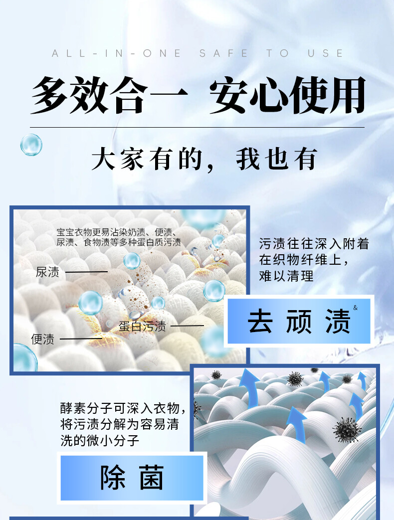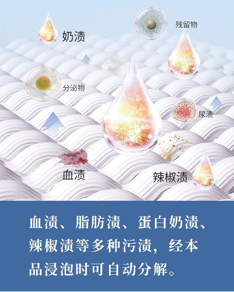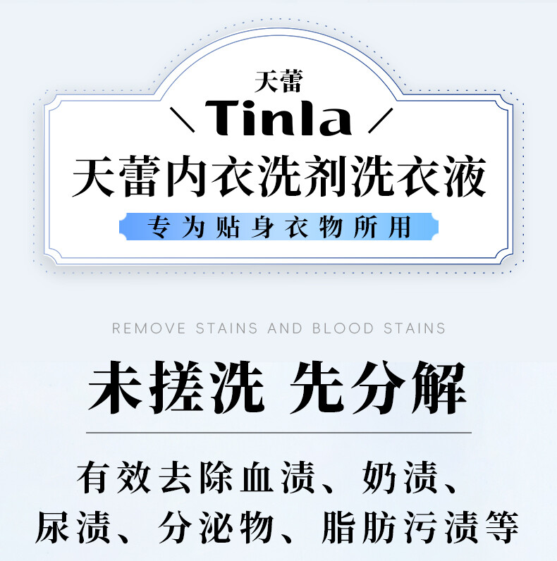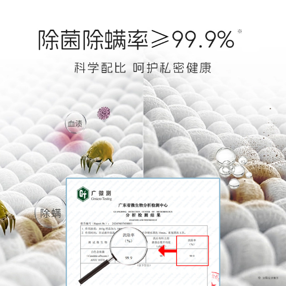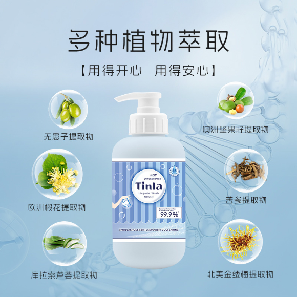 特别适合内衣、内裤及贴身衣物洗涤,自动分解,免搓洗,只需壹點點即可輕松去漬,令衣物亮麗如新,本品0%添加磷、熒光增白劑、色素、甲醛。除菌除满率99.99%