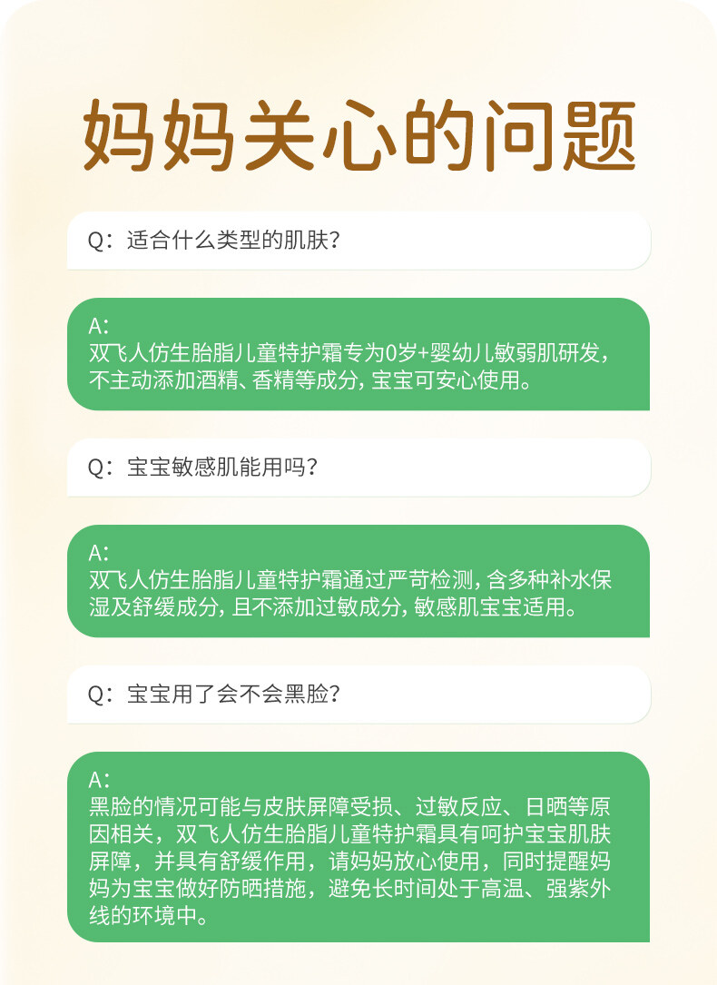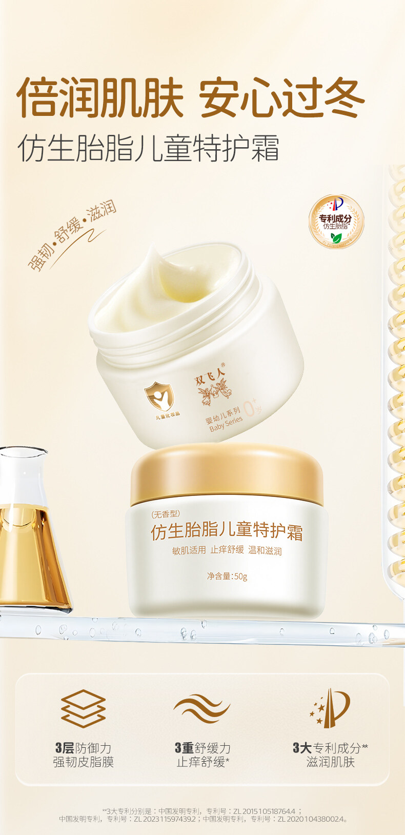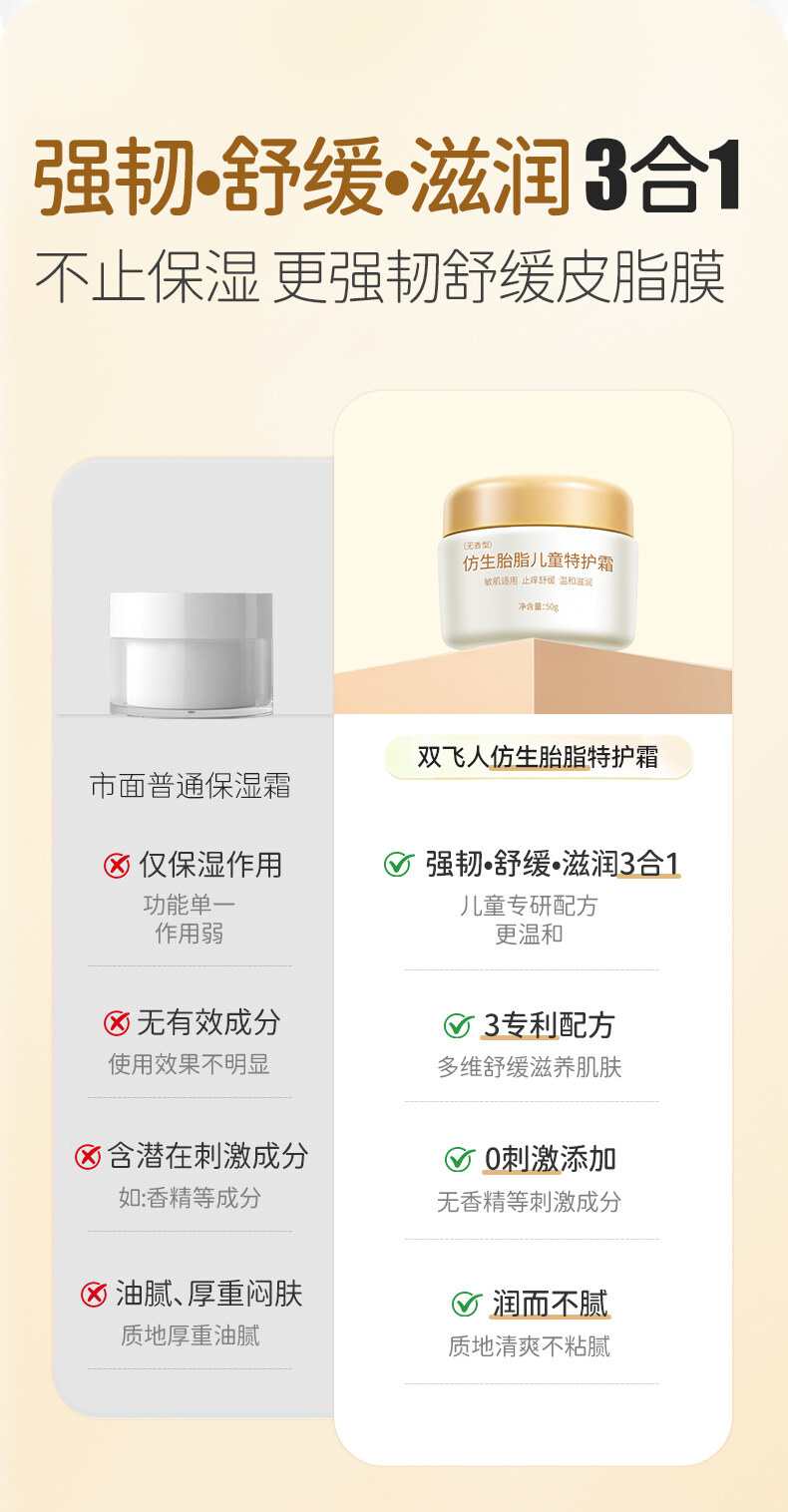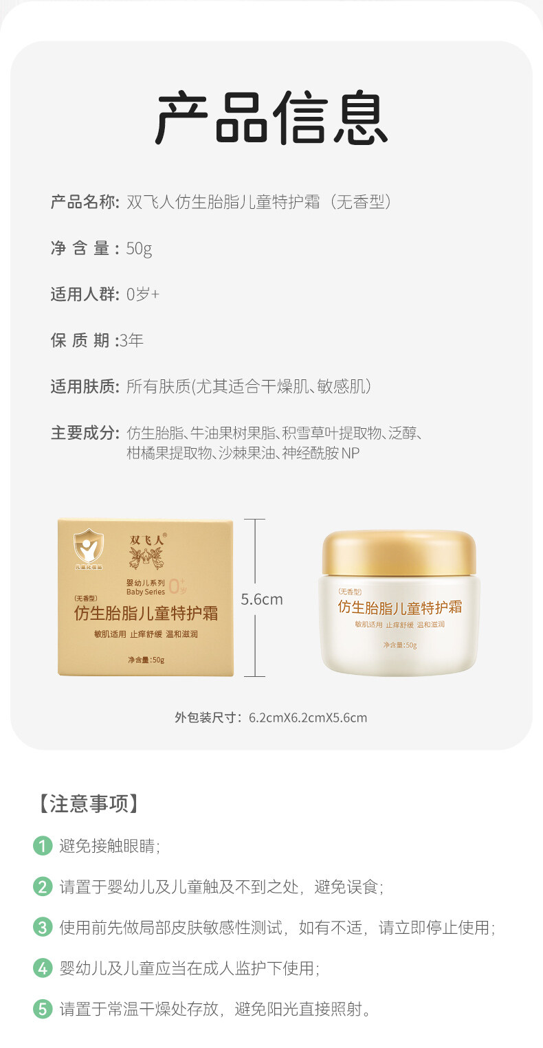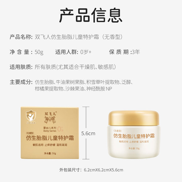双飞人仿生胎脂儿童面霜滋润保湿精华霜婴儿新生儿童冬润肤乳