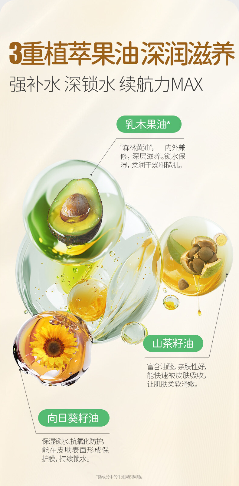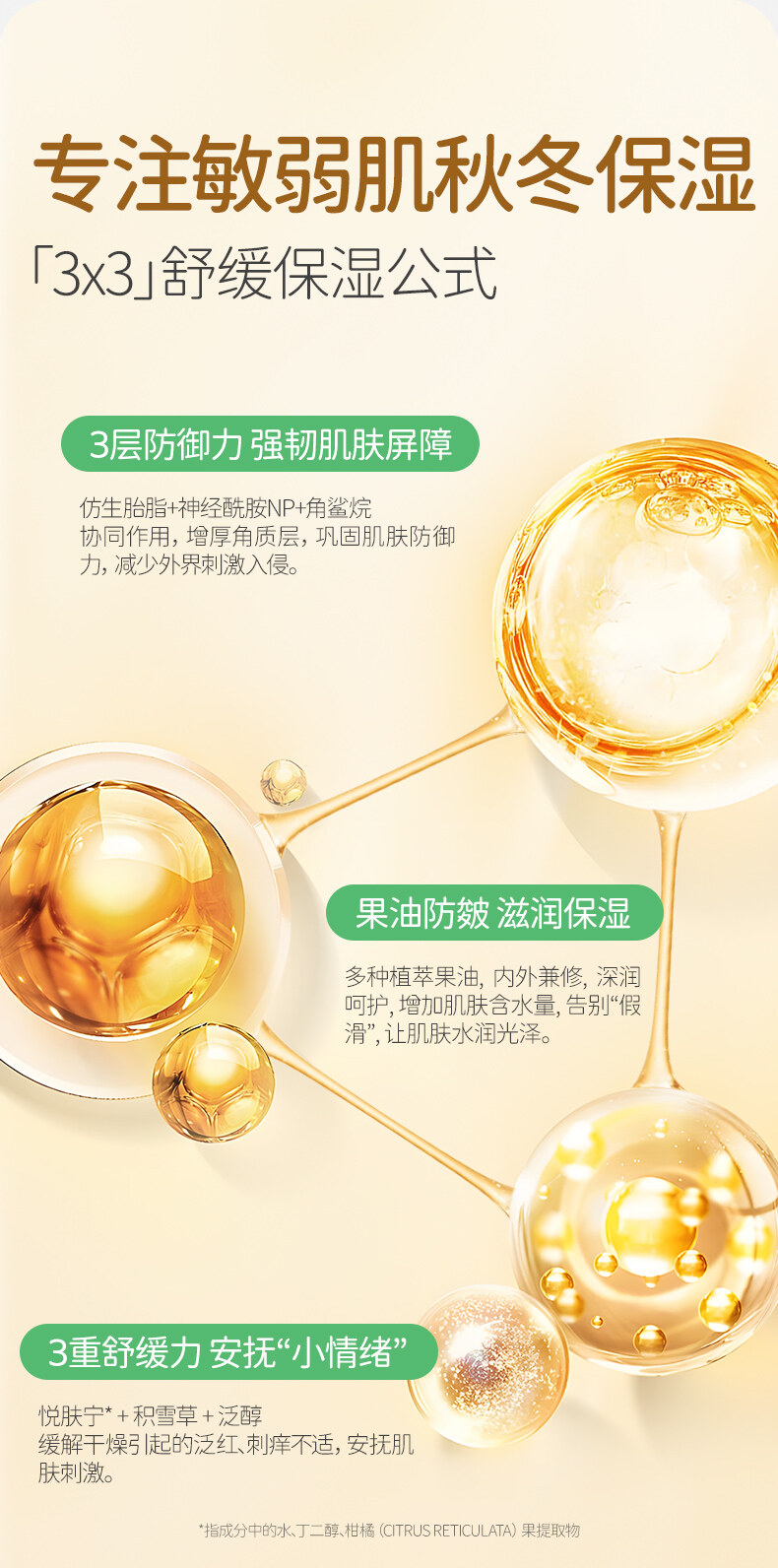 神经酰胺NP、积雪草叶提取物、角鲨烷、泛醇、牛油果树果脂、沙棘果油
