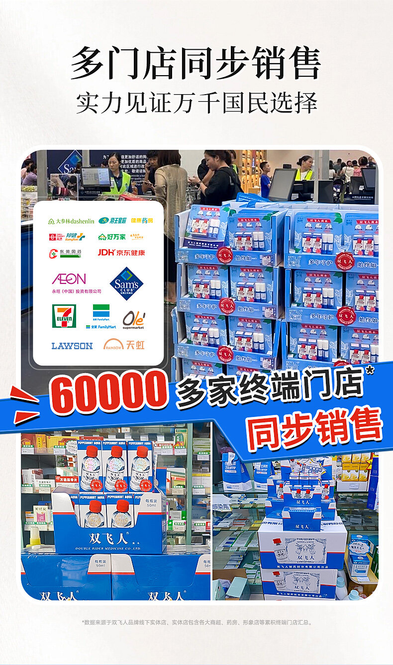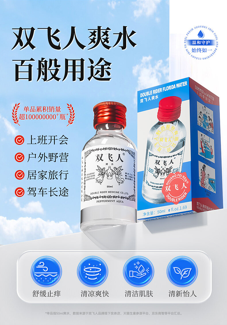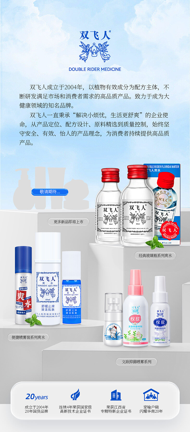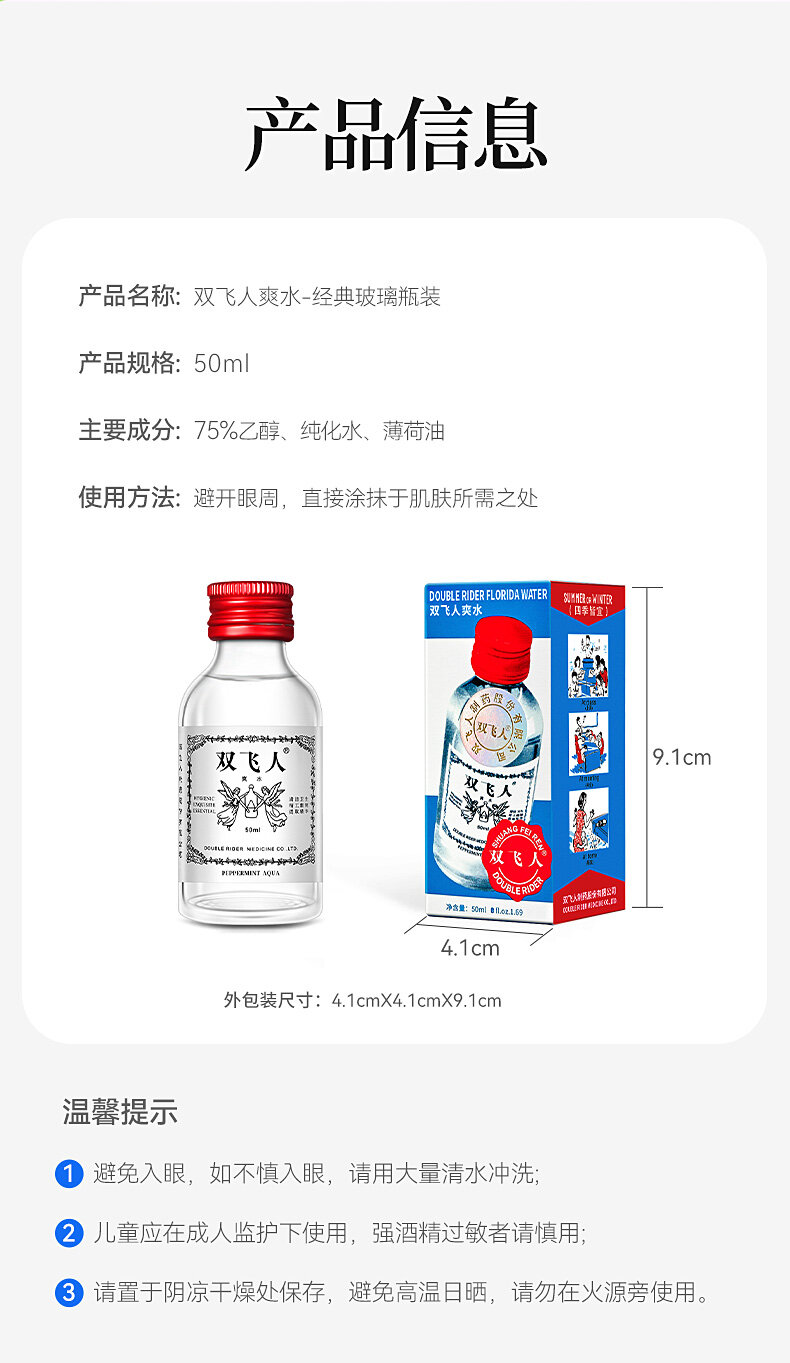 双飞人50ml薄荷爽水舒缓止痒春夏办公开车上课清凉官方正品