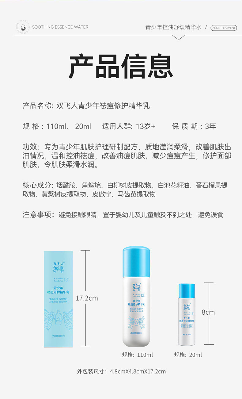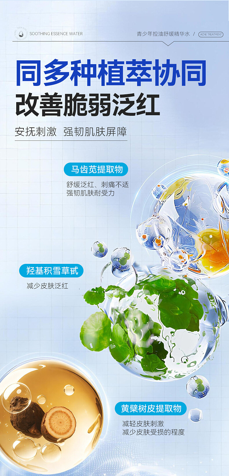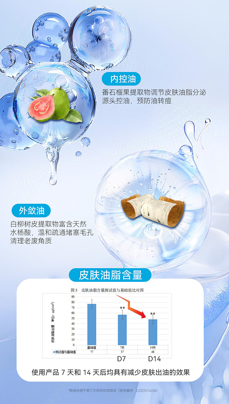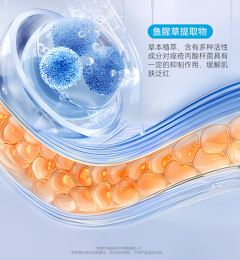 白柳树皮提取物、烟酰胺、角鲨烷、番石榴果提取物、马齿苋提取物、鱼腥草提取物、黄檗树皮提取物、季铵盐-73、透明质酸钠