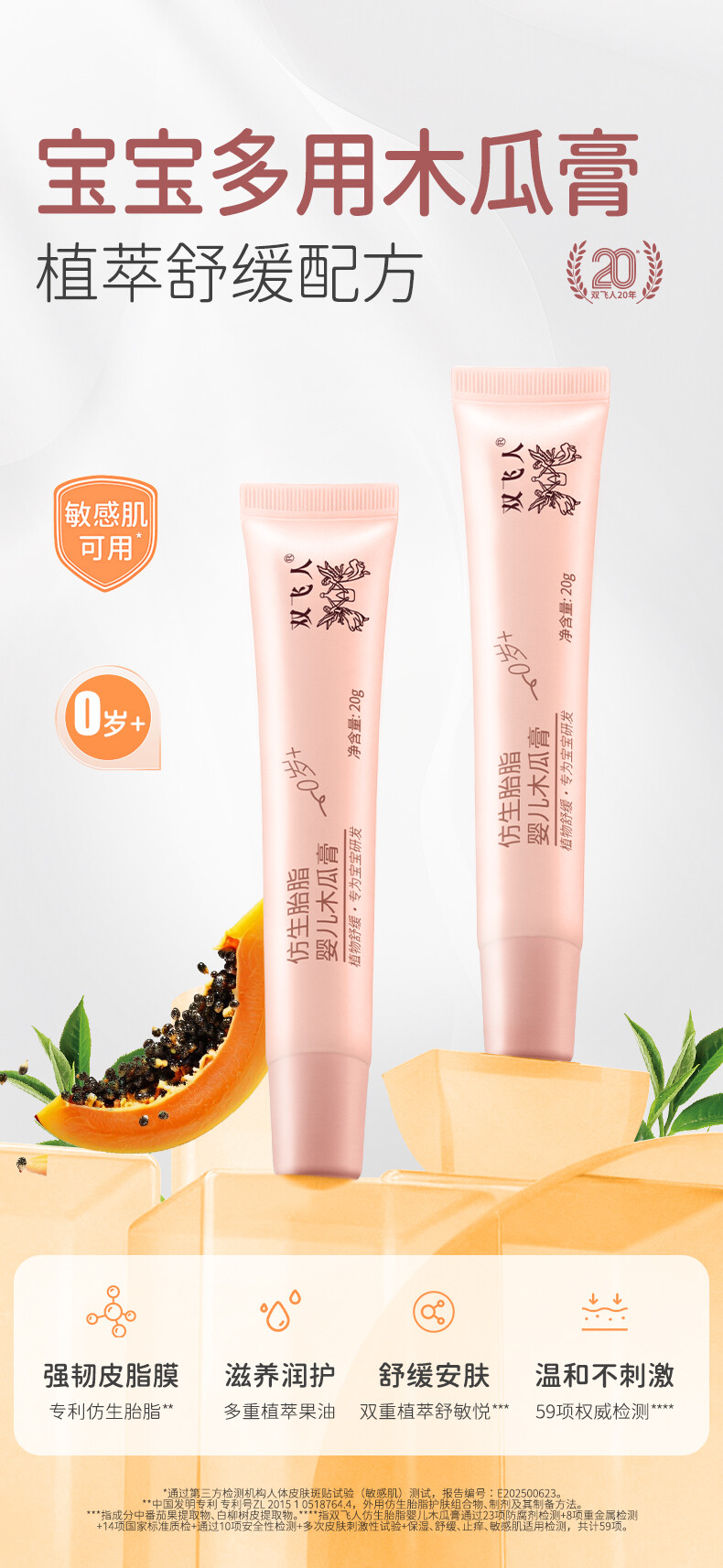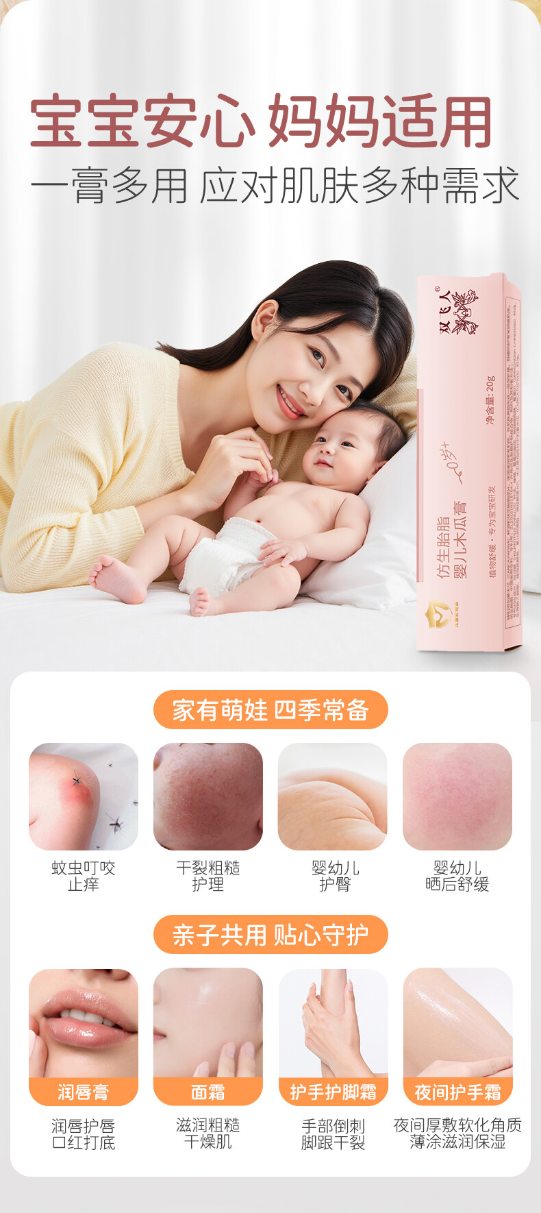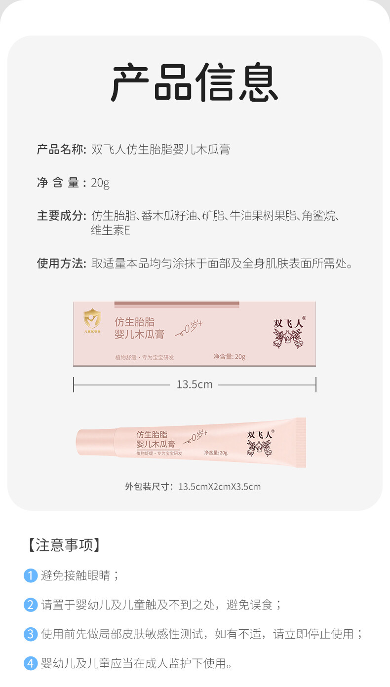 双飞人仿生胎脂婴儿木瓜膏润唇膏保湿滋润防干裂蚊虫叮咬