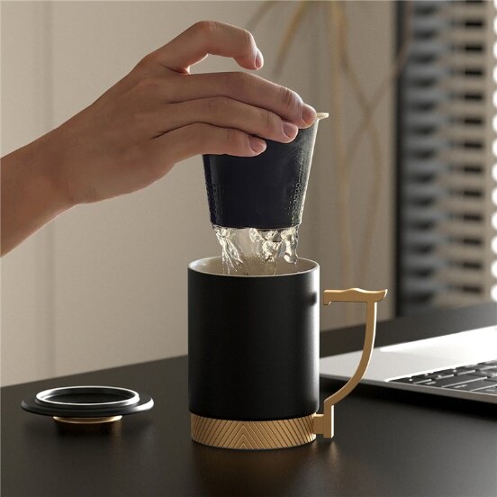 1杯1盖1滤1礼盒,黑砂釉/白砂釉,礼盒装,杯身直径85mm,含盖高度135mm,容量400ml