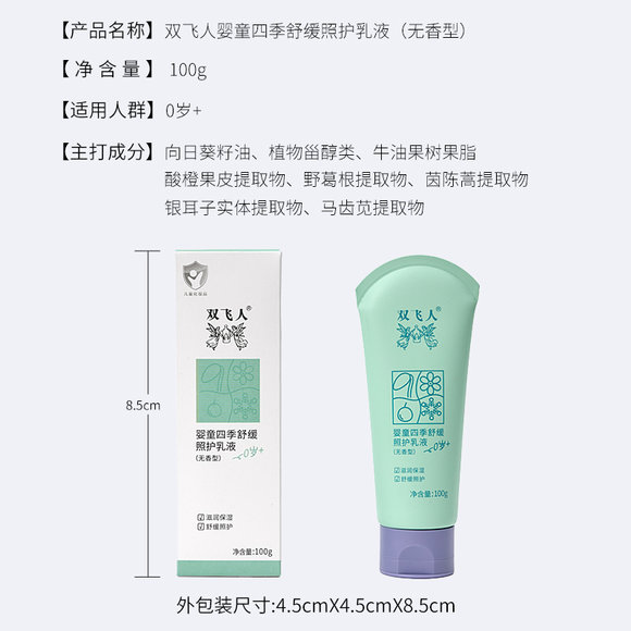 双飞人婴童四季乳液儿童滋润身体乳宝宝霜保湿面霜0岁+可用