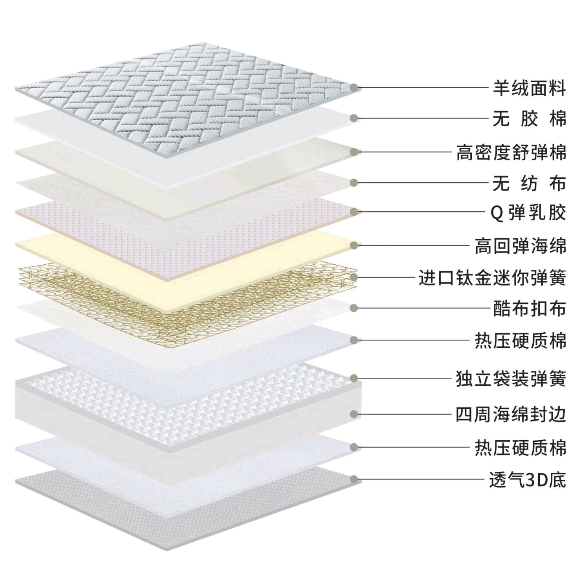 热压硬质棉 独立袋装弹簧 四周海绵封边