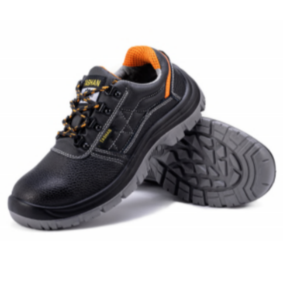 鞋帮材质:二层荔枝纹压花牛皮 鞋底材质:聚氨酯双密度大底 功能材质:欧标钢头、欧标钢底 产品功能:防砸、防刺穿、防静电 产品码数:35-47 码 单只克重:520g