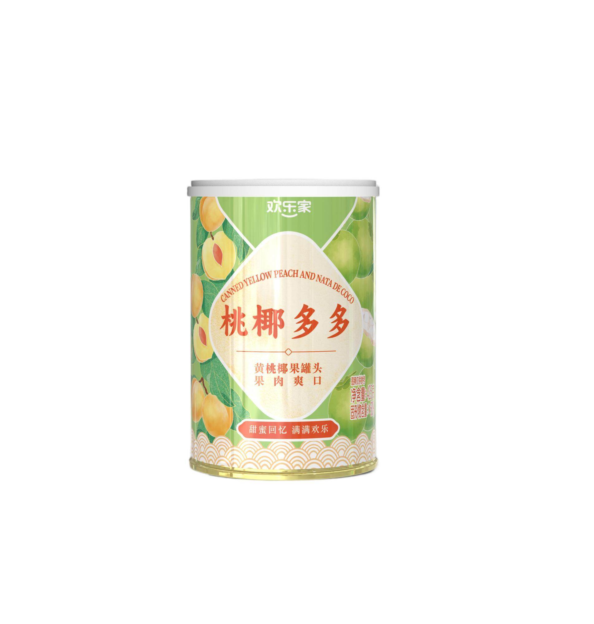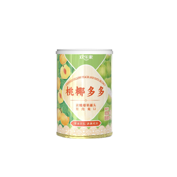 欢乐家425G黄桃椰果罐头:1、黄桃+椰果,双重口感,固形物含量≥50%,桃椰多多,为身体快速补充能量。 2、上市公司出品,产品品质更有保障。 3、具备清真认证及FSS22000体系证书,出口备案。 4、欢乐家水果罐头累计8年全国销售额第一,产品深受中国市场欢迎。