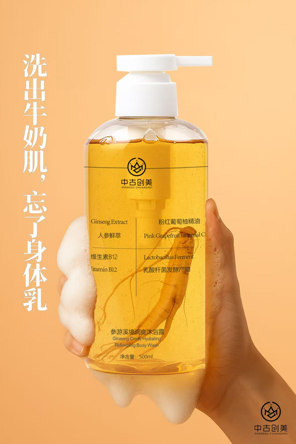超滋润 润到省去身体乳 一整颗人参鲜萃和发酵精粹 氨基酸表活 粉红葡萄柚精油香气
