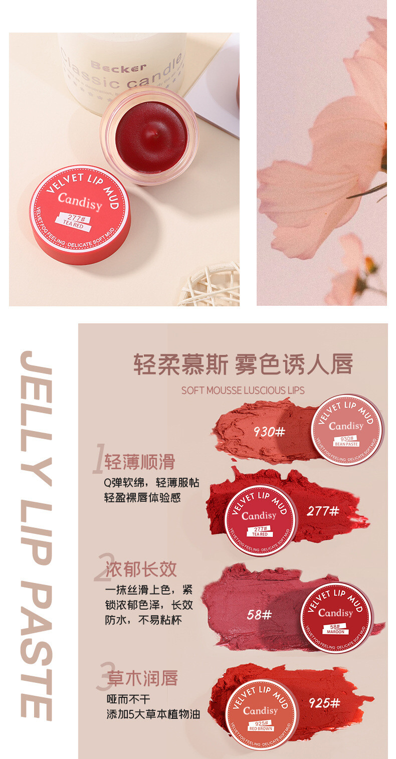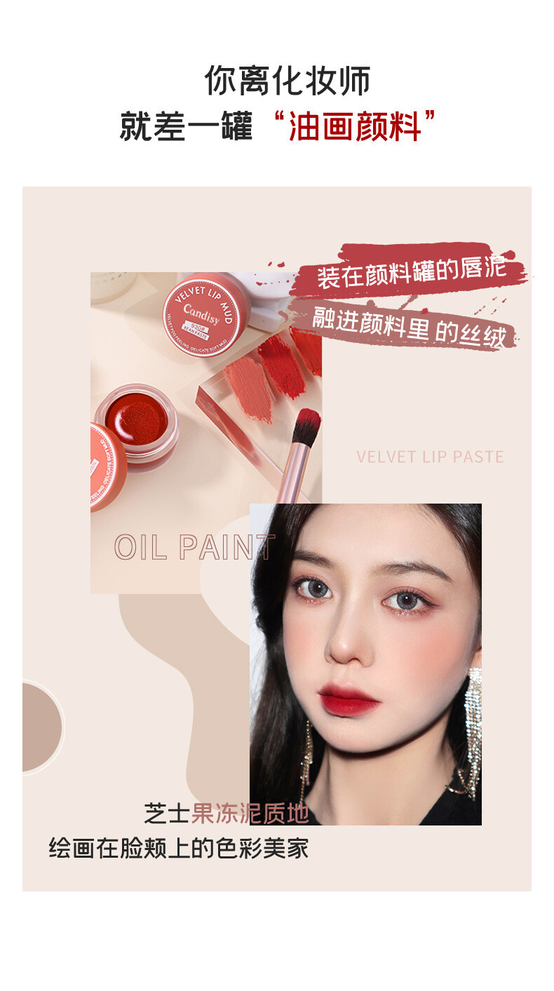 产品特色:奶糕泥质地,慕斯般容易推开,适合打造高级柔雾哑光妆效、高度显色与饱和、长效持妆不沾杯 、柔焦磨皮效果、轻盈无负担、修饰唇形、减龄显嫩、遮盖深唇色、方便晕染与调色、提升气场、改善唇周暗沉 、防水防汗。