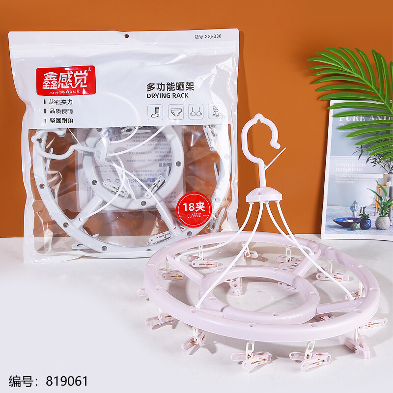 XGJ-336双层圆形塑料晒架18夹 塑料袜夹晒衣架-日用百货