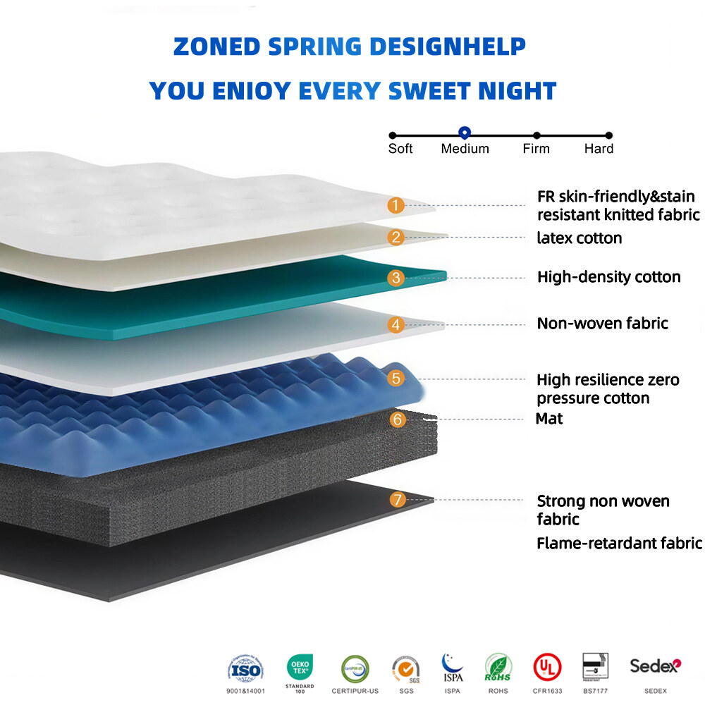 北美特大号尺寸混合型家用床垫|支撑强酒店床垫|